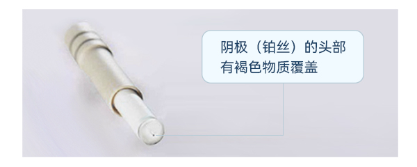 這種情況下,將內(nèi)電極的頭部對著光源觀察陰極,可以看到陰極表面顯露出黑色??墒褂脴?biāo)號1000目以上的砂紙在鉑絲頭部輕輕打磨數(shù)次,至鉑絲表面發(fā)亮即可。切不可過度打磨,否則會使內(nèi)電極頭部受損。